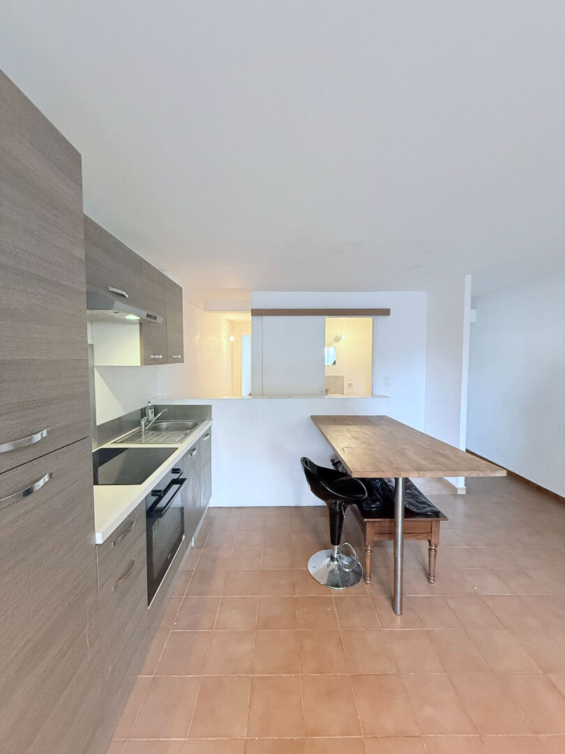 Au centre du village de Carnoules, grand appartement traversant de type 2 d'une superficie de 57 m2 situé au 1 er étage, et composé d'une belle pièce à vivre avec cheminée et une cuisine ouverte aménagée, une grande chambre de 16 m2, salle d'eau avec WC;